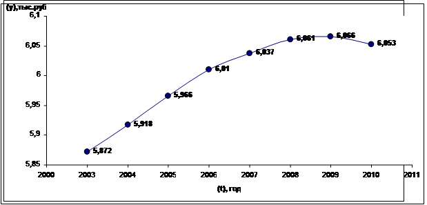 Таким образом уравнение линейной трендовой корреляционной модели имеет вид: