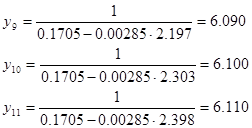 | Обратнологарифмическая | 0,950 | 6,090 | 6,100 | 6,110 |
