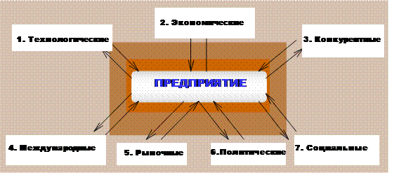 Угрозы и возможности, с которыми сталкивается предприятие, обычно можно выделить в семь областей (Рис.3).
