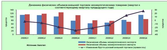 Одним из основных каналов влияния внешних кризисных явлений на экономику страны стало сокращение спроса на белорусскую продукцию на экспортных рынках. Это было обусловлено в первую очередь общим падением деловой и инвестиционной активности в странах, являющихся ведущими внешнеторговыми партнерами Республики Беларусь, прежде всего в Российской Федерации и Европейском союзе. Так, снижение реального ВВП Российской Федерации в 2009 году по отношению к 2008 году составило 7,9 процента, Европейского союза – 4,1 процента.