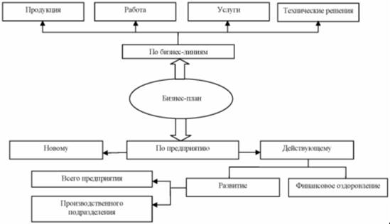 В рыночной экономике существует множество версий бизнес-планов по форме, содержанию, структуре и т. д. Наибольшие различия наблюдаются в рамках модификаций бизнес-планов в зависимости от назначения: по бизнес-линиям (продукция, работы, услуги, технические решения); по предприятию в целом (новому или действующему).