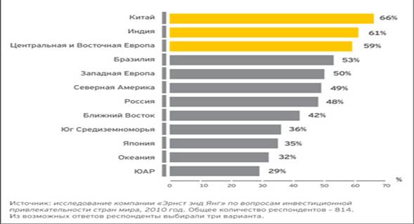 Рис.3 Страны/регионы, которые будут наиболее привлекательными для прямых иностранных инвестиций в течение следующих трех лет
