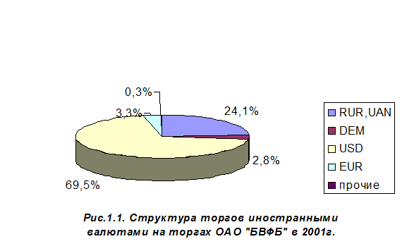 Ниже приводится структура торгов иностранными валютами в 2001 и 2002 г.г.