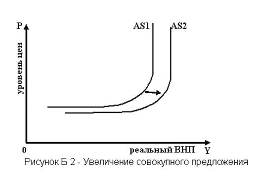 изменение в технологии или производительности - рост производительности труда увеличивает объем производства и тем самым совокупное предложение,