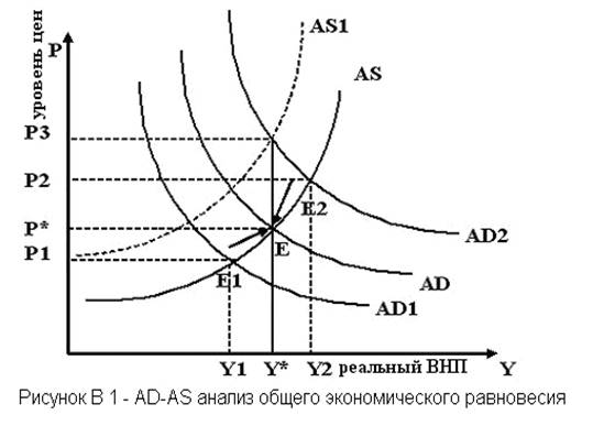 Модель совокупного спроса и совокупного предложения AD-AS, является базовой для изучения колебаний объема выпуска всей совокупности товаров и услуг в зависимости от уровня цен в экономике в целом; а также для изучения причин и последствий этих изменений. С ее помощью могут быть описаны различные варианты экономической политики государства.