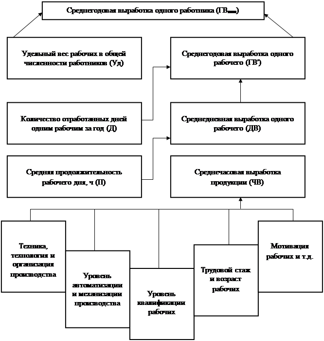 Таким образом, факторная модель для анализа производительности труда на предприятии будет иметь вид: