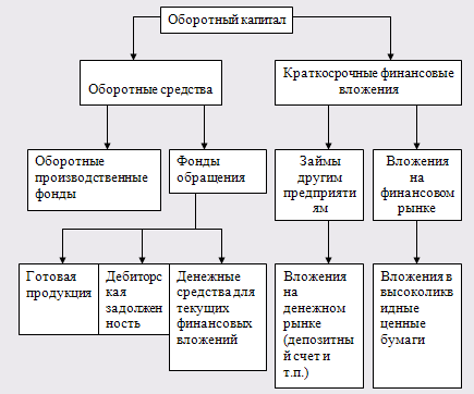 Следовательно, для обеспечения процесса производства предприятие должно формировать оборотный капитал. Оборотный капитал состоит из оборотных средств и краткосрочных финансовых вложений (Рис.1).