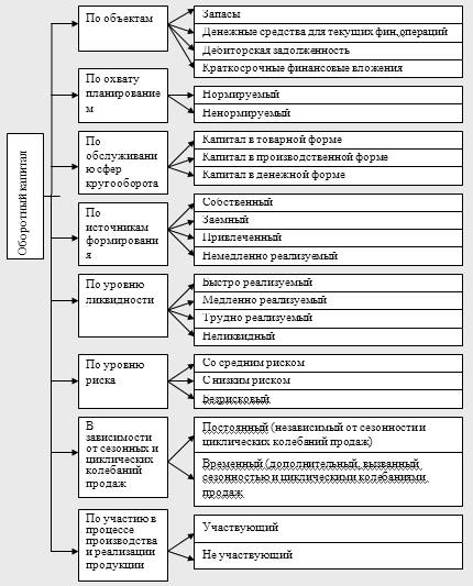 В зависимости от объектов оборотный капитал представляет собой совокупность запасов, денежных средств для текущих финансовых операций, дебиторской задолженности и краткосрочных финансовых вложений.