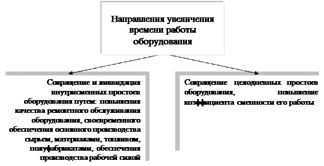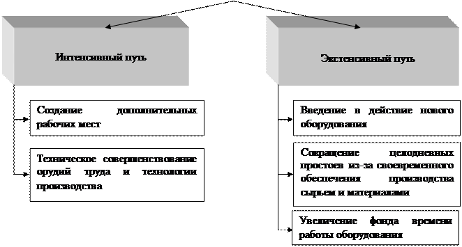 Таким образом, любой комплекс мероприятий по улучшению использования производственных мощностей и основных фондов, разрабатываемый во всех звеньях управления производством, должен предусматривать обеспечение роста объемов производства продукции, прежде всего за счет более полного и эффективного использования внутрихозяйственных резервов и путем более полного использования машин и оборудования, повышения коэффициента сменности, ликвидации простоев, сокращения сроков освоения вновь вводимых в действие мощностей, дальнейшей интенсификации производственных процессов.