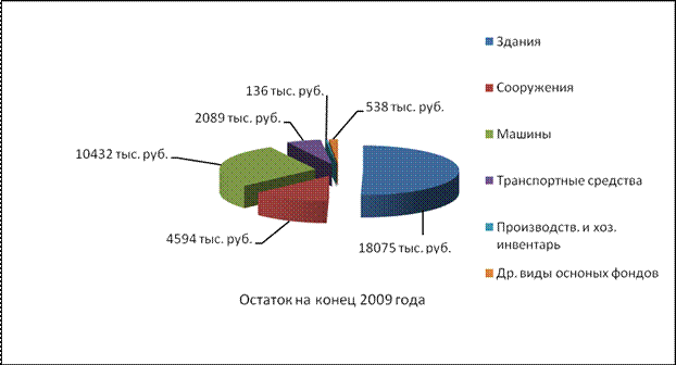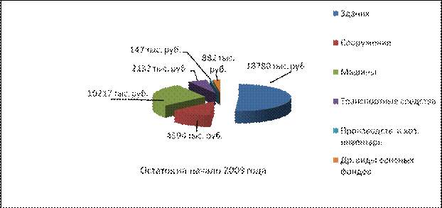 На балансе предприятия по состоянию на 1 января 2009 года находятся основные средства на сумму 36752 тыс. руб. Увеличение суммы по сравнению с 01.01.2008 г. на 32780 тыс. руб. произошло за счет приобретения новых станков, легковой автомашины, вычислительной техники.
