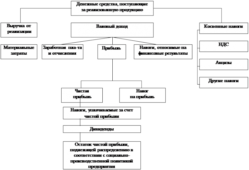 Поступление выручки на денежные счета предприятия представляет собой завершение кругооборота средств, а ее использование представляет как начало нового кругооборота, так и стадию распределительных процессов. На этой стадии формируется доходная база бюджетов разных уровней и обеспечиваются тем самым государственные интересы, а также образуются собственные финансовые ресурсы предприятия.