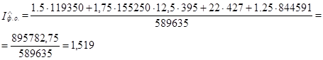 Эф = 2293344 : (314729,5 + 501121,5 + 322542 + 75312) = 2,889 или 288,9%