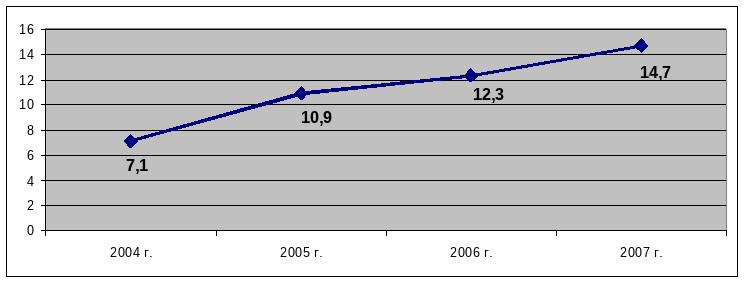 Показатели роста экстремального туризма в РФ за 2004-2007 гг.