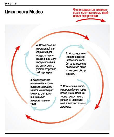 Наличие циклов роста не является привилегией высокотехнологичных отраслей. Успех системы управления льготным лекарственным обеспечением, созданной фармацевтической компанией Medco, также связан с эффектом положительной обратной связи.