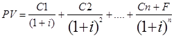 Текущая приведенная стоимость- это есть, стоимость всех поступлений, которые предполагаются по данному финансовому инструменту с учетом всех поступлений которые предполагаются по данному финансовому инструменту с учетом периода в который эти поступления будут производится т.е. если по какому либо финансовому инструменту, на пример по облигациям, предполагаются какие- то периодические выплаты, купонные платежи, то купонный платеж с индексом 1 (через год) и мы будем учитывать величину дисконта т.к. в это год мы жертвуем упущенными возможностями и наши упущенные возможности равны процентной ставке (дисконт).