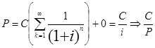 Ещё одним вариантом финансового инструмента, для которого мы можем с вами рассчитать ставку процента, является консоль- это экзотический финансовый инструмент, экзотическая купонная облигация и как мне известно она была выпущена только один раз, но в силу своих свойств они остались актуальным и до сих пор, они были выпущенны банком Англии, для финансирования войны с Францией. Вообще иногда возникают ощущения, что всё рациональное, что мы получаем, в области финансов и денежного обращения мы обязаны войнам, что велись между этими двумя странами. Т.к. для финансирования своих войн, то Франция то Англия придумывали различные финансовые инструменты. И вот Банк Англии в конце 18- го века предложил выпуск финансового инструмента, называемогог консолью, что представляло купонную облигацию с бесконечным сроком погашения. В силу того, что эта облигация обладает бесконечным сроком погашения сумма купонных платежей по ней известна, то мы можем достаточно легко рассчитать чему будет равна ставка процента для консолей, где N→¥, то