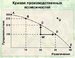 Кривая производственных возможностей - это график, который показывает максимально возможные объёмы производства двух благ при данных ресурсах и их полном использовании.