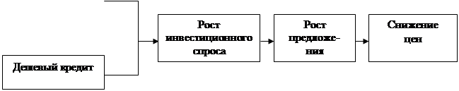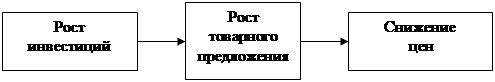 Кейнс считал, что поднять уровень предложения можно, создав спрос, который для предпринимателей должен стать внешней активизирующей силой. Другим рычагом роста предложения должны стать дополнительные инвестиции, подстегнутые дешевым кредитом. Эффективность спроса правительство создает тем, что оно предоставляет крупным частным фирмам весомый государственный заказ. Фирмы, связанные со смежниками, дают тем тоже соответствующие заказы. В результате создается мультипликационный эффект, приводящий в движение большой комплекс предприятий. Спад сокращается, безработица снижается. Предложение, подстегнутое заказами и дешевыми кредитами, растет, что приводит, в конечном счете, к падению цен, к сокращению инфляции.