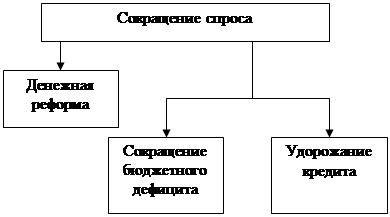 На первом и втором этапах используются рычаги, снижающие совокупный спрос, а на третьем – рычаги, стимулирующие рост товарной массы.