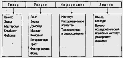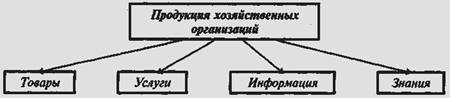 Хозяйственные организации создаются для удовлетворения потребностей и интересов человека и общества во внешней для организации среде. Данные организации могут производить продукцию в виде товара, услуг, информации или знаний (рис. 1).