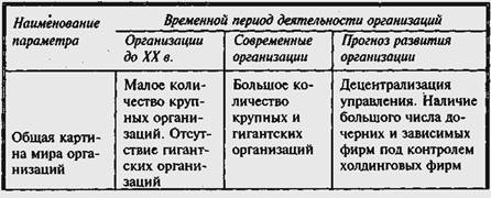 Хозяйственные организации с численностью, существенно меньшей, чем у МП, относят к микроорганизациям, например, аудиторская фирма с численностью персонала шесть человек. Хозяйственные организации представляют подавляющее количество организаций в мире, поэтому нас интересует их будущее. В табл. 1 представлен характер изменения отдельных параметров организации.