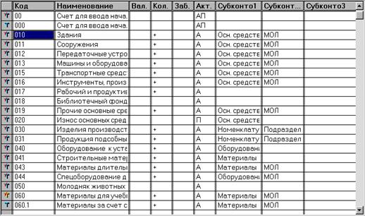 Счет МБП. Из плана счетов выбирается счет, на котором будут учитываться МБП.