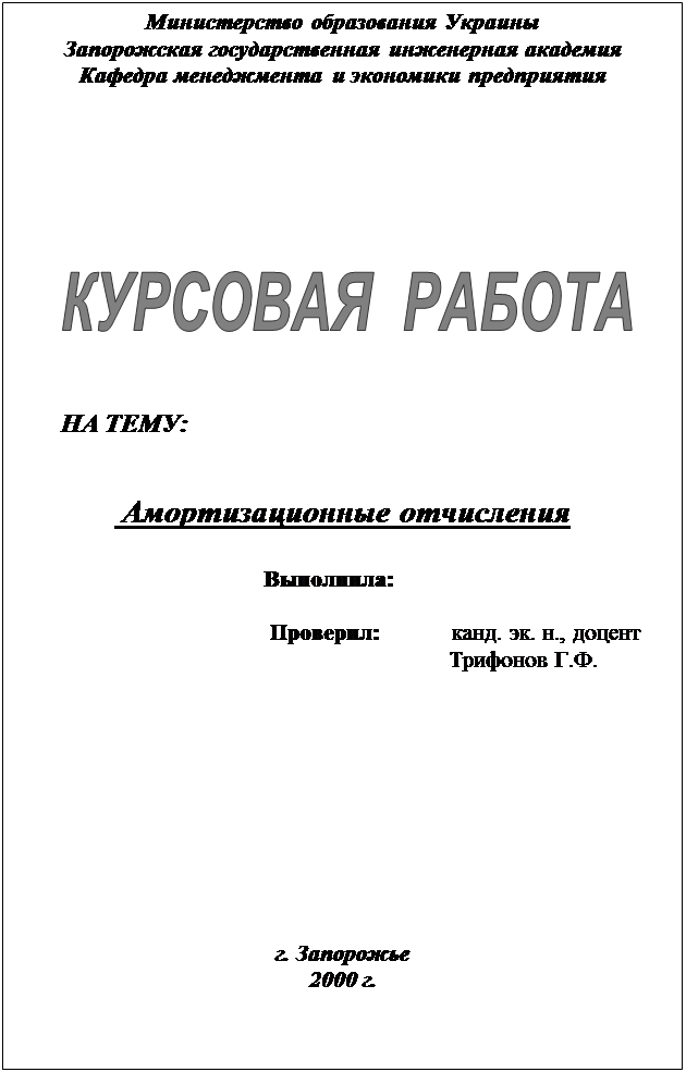 Краткое описание работы: Министерство образования Украины Запорожская государственная инженерная академия Кафедра менеджмента и экономики предприятия НА ТЕМУ: Амортизационные отчисления