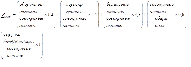 В развитых капиталистических странах широко используется пятифакторная модель Альтмана, которая имеет следующий вид: