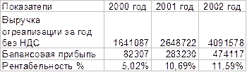 Следующим шагом рассчитаем рентабельность реализованной продукции, исходя из балансовой прибыли (Таблица 3).