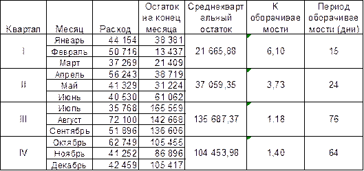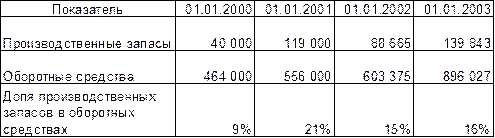 Для трехлетнего периода это небольшое значение (минимальный размах вариации производственных запасов только за один год был равен 57%).