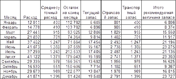 Таким образом, можно сделать вывод о неудовлетворительной работе маркетинговой службы предприятия, которая не в состоянии спланировать объем продаж. Именно плохая организация планирования сбыта заставляет держать значительный запас готовой продукции на складе. А, следовательно, это заставляет поддерживать производство на высоком уровне и создавать излишние запасы материалов.
