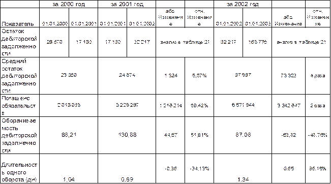 В 2002 году темпы роста среднего остатка задолженности и объема погашенных обязательств были примерно равны. Поэтому оборачиваемость и продолжительность одного оборота, практически, не изменились.