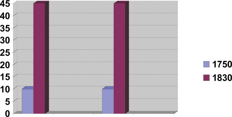 Удельный вес Англии в мировом промышленном производстве стал составлять в начале 30-х годов 10% против 30% в начале XIX в. Первое место перешло к США.
