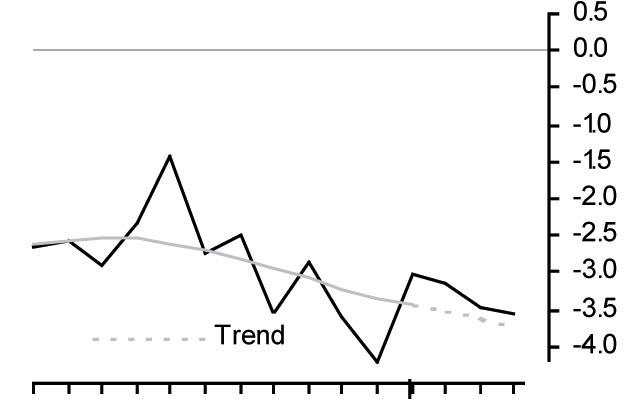 Бюджетный дефицит вырастет до 3% от ВНП в 2005-06 годах.