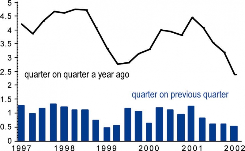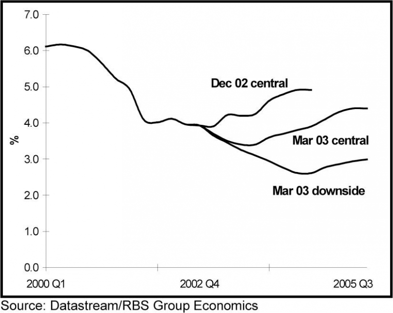 Экономика вырастет до уровня 2,2% в 2003 г., увеличиваясь до 2,8% в 2004 г. и 2,9% в 2005 г.