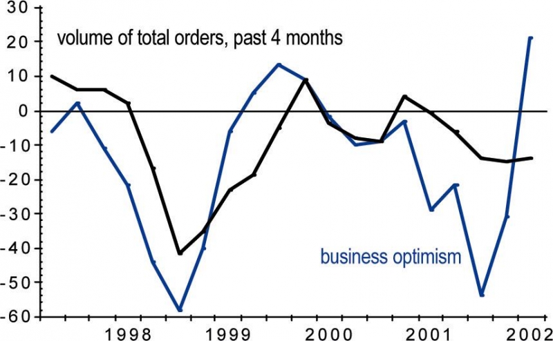 Трудно определить уровень зависимости восстановления глобальной экономики от переживаний войны, нежели от других структурных изменений. Так как экономика Украины, в частности инвестиции в развитие нашего бизнеса, зависит от уровня деловой активности в Британии, то и прогноз для экономики Украины, как следствие, тоже не утешителен. Валовый внутренний продукт Украины в 2003 году вырастет на 5%, а ВВП текущего года - на 4,8%. Однако в Украине существуют и другие прогнозы экономического развития: разработанные правительством и Нацбанком и зачастую они противоречат друг другу. При этом любопытно, что оценки перспектив 2003 года от украинских экспертов пессимистичнее прогнозов МВФ.