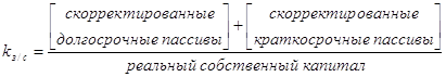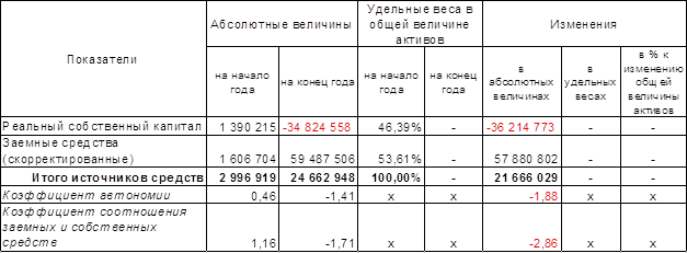 Структуру пассивов характеризуют коэффициент автономии и коэффициент соотношения заемных и собственных средств, для расчета которых необходимо брать реальный собственный капитал и скорректированные заемные средства.
