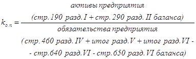«Методическими положениями по оценке финансового состояния предприятий и установлению неудовлетворительной структуры баланса» в качестве критерия установлены три коэффициента: коэффициент текущей ликвидности, коэффициент обеспеченности собственными средствами и коэффициент восстановления (утраты) платежеспособности.
