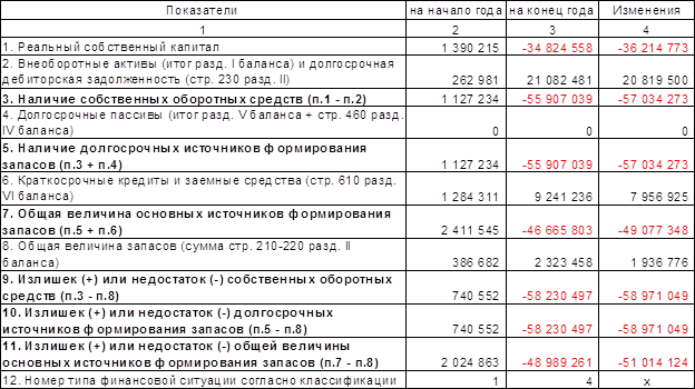 Аналогичные выводы можно сделать, анализируя разницу реального собственного капитала и уставного капитала (см. п.2.2), которая является основным исходным показателем устойчивости финансового состояния организации. Отсюда следует, что даже минимальное условие финансовой устойчивости предприятия не выполняется.
