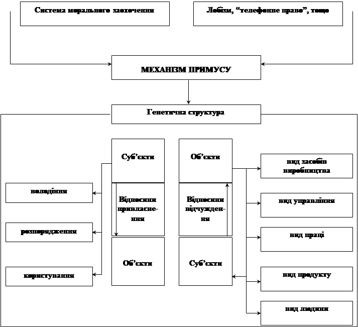 Обирати ті чи інші форми привласнення і відчуження економічних суб’єктів спонукають як об’єктивні, так і суб’єктивні обставини. Механізм примусу грунтується на сукупності економічних і позаекономічних методів.