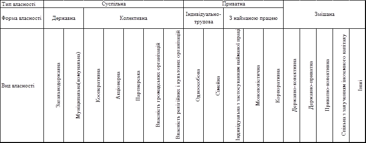 Структура власності – різноманітна. Класифікується за основними системоутворюючими і структуровизначальними критеріями:
