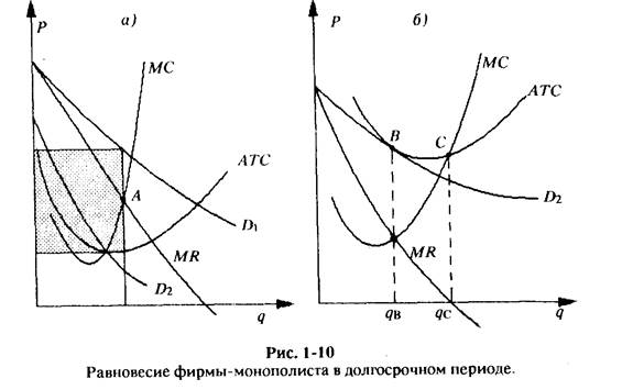 Иная ситуация существует при монополии. В силу непреодолимости барьеров для входа в отрасль здесь помимо воли монополиста никогда не создаются новые производственные мощности, т.е. в экономическом смысле краткосрочный период никогда не сменяется долгосрочным, если только это не обещает принести дополнительную прибыль монополисту. Поэтому однажды возникнув, экономическая прибыль присваивается монополистом на постоянной основе.
