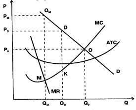 2) значительное завышение цен в сравнении с величиной, которая сложилась бы при совершенной конкуренцией (Рm » Рo);