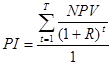 Поскольку прирост конкурентного преимущества обеспечивает (по определению) прирост продуктивности использования ресурсов, который количественно может быть выражен рентабельностью производства, в качестве показателя эффективности может быть принят индекс доходности (PI), который определяется как отношение чистого денежного потока к единовременным инвестициям в проект: