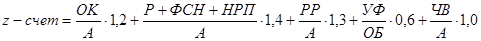 Обобщающим показателем финансового состояния предприятия, характеризующим степень «близости» предприятия к банкротству, является показатель «z-счета» Альтмана. Этот показатель рассчитывается по формуле: