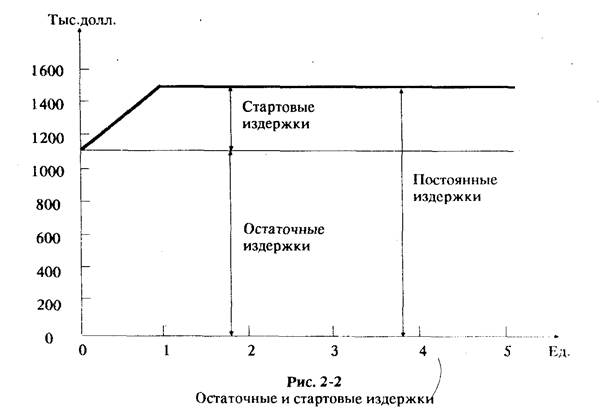 Например, если постоянные издержки величиной 1500000 долл. делятся на остаточные — 1100000 и стартовые — 400 000 долл., то соотношение это может быть графически проиллюстрировано так (рис. 2-2):