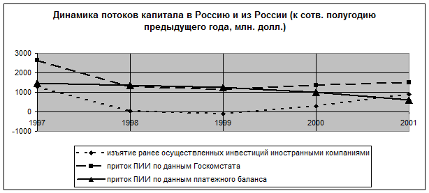 [13] Госкомстат указывает только поступление ПИИ, платежный баланс – разницу между поступлением и изъятием ранее осуществленных инвестиций.