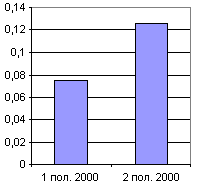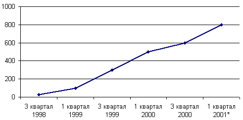 Если учесть, что сегодня в США более 120 млн. пользователей, в Западной Европе - более 50 млн., в Азиатско-Тихоокеанском регионе - 70 млн., Восточной Европе - 12 млн., а в России всего 2 млн., то становится ясным, что серьезные инвестиции требуются, прежде всего, в регионы России с тем, чтобы обеспечить необходимые возможности для работы в сети Интернет. И если сегодня в России Интернет используют всего 1,5% населения, а, к примеру, в Скандинавских странах - 40%, в США - около 30%, в Великобритании - 15%, то инвестиционная емкость рынка практически безгранична. Сегодня мы наблюдаем положительную тенденцию притока инвестиций в Интернет-экономику. Более 30 различных зарубежных и российских компаний сегодня готовы инвестировать в эту сферу более 500 млн. $.