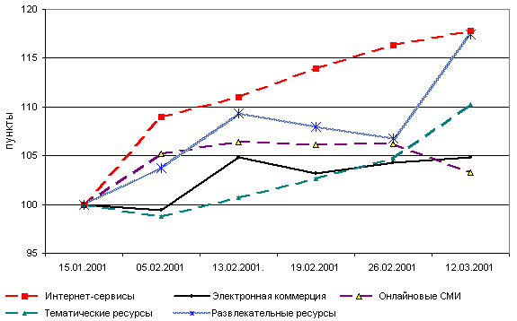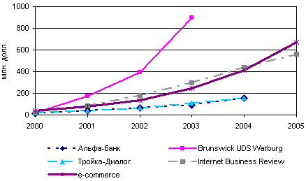 Недавние примеры показали, что практически любая уважающая себя компания или крупные российские предприятия открывают собственные инвестиционные Интернет-проекты. По оценкам ТПП РФ эта сумма может составлять до $1,5 млрд. О таких инициативах по развитию "электронной торговли" и "Интернет-проектов" заявили группа "Мост", НК "Юкос", "Интеррос", НК "Лукойл", "Газпром" и ряд других, готовых инвестировать по 10-15 млн. долларов в новую сферу электронного бизнеса.