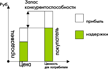 Портер считает, что у каждого конкурентоспособного товара цена реализации ниже потребительской ценности. Для потребителя неоплаченная часть потребительской ценности равна полученной им от использования товара дополнительной прибыли. Для поставщика она соответствует конкурентоспособности его продукции.